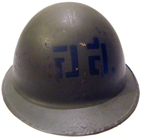 Après la création de la Légion Wallonie pour le front de l'Est en août, le mouvement Rexiste de Léon Degrelle franchit à l'automne 1941 un pas supplémentaire dans la collaboration : à l'initiative de l'administration d'occupation qui souhaite mobiliser le moins d'effectifs allemands dans les territoires occupés, Rex procède au recrutement d'une seconde unité militaire, les Gardes wallonnes, Degrelle voyant là une magnifique occasion d'accroître son pouvoir politique et de disposer d'une force militaire au pays. Les membres des Gardes wallonnes seront équipés de casques modèle 31 de fabrication Tordoir en livrée bleu nuit avec l'insigne décalcomanie particulier de la formation apposé à l'avant du casque (ces casques sont initialement fabriqués sans orifices pour attribut). L'insigne des gardes Wallonnes existe en deux tailles et dont on peut dire qu'il existe deux variantes : une de couleur plutôt grise et l'autre plutôt bleue. Au lendemain de la guerre, une partie de ces casques sera récupérée par la Gendarmerie belge. La partie frontale sera percée pour l'application de l'attribut au lion, le casque sera adéquatement repeint en noir. |