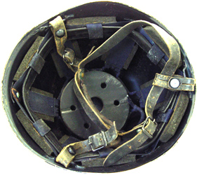 A noter que l'on trouve de temps en temps des tampons amortisseurs montés à l'envers par le porteur du casque, préférant pour sa tête, le contact de la toile, moins oppressant que celui du cuir.