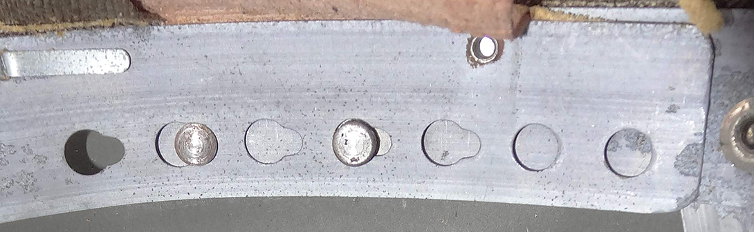 Les têtes des rivets utilisés pour le montage des supports de la jugulaire sont peintes séparément de couleur analogue au casque.
