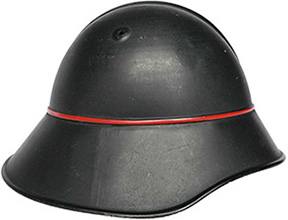 D'autres projets ont vu le jour mais non suivis d'effet comme ce casque qui a été proposé dans une couleur verte, avec ou sans grosse croix fédérale emboutie sur la face avant. La plus grosse quantité a fini sa vie dans le canton du Tessin au sein du corps des pompiers, repeint en noir et en bleu. On constate l'inspiration commune pour ce prototype, mais son allure générale est nettement moins martiale. |