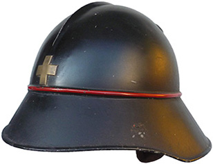 Casque Mle 18 reconditionné dans les années 50 pour le corps des pompiers civils.