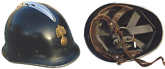 Il fallait que ces casques aient un aspect indiquant clairement leur appartenance à l'arme : couleur bleu nuit et grenade métallique. Les sous-casques bleus sont trouvés auprès de l'Armée de l'air et employés tel quel. Ce sont des types 1 ou 2. Des bombes métalliques kaki du 2ème type sont récupérées, principalement dans les réserves de mobilisation, et les ateliers d'armurerie des corps sont chargés de la transformation.